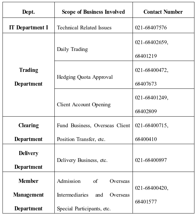 For any questions related to the mock test of the international business of nickel futures and options, please contact the following departments.