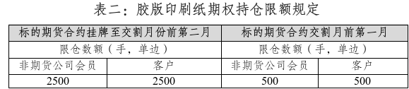 胶版印刷纸期权和胶版印刷纸期货共用获批的套期保值交易持仓额度。