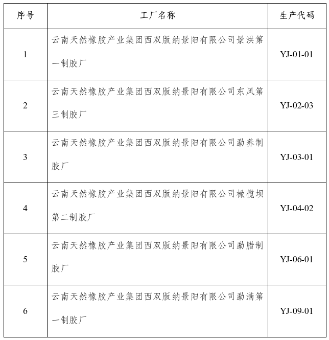 一、同意注销云南天然橡胶产业集团西双版纳景阳有限公司景洪第一制胶厂、云南天然橡胶产业集团西双版纳景阳有限公司东风第三制胶厂、云南天然橡胶产业集团西双版纳景阳有限公司勐养制胶厂、云南天然橡胶产业集团西双版纳景阳有限公司橄榄坝第二制胶厂、云南天然橡胶产业集团西双版纳景阳有限公司勐腊制胶厂、云南天然橡胶产业集团西双版纳景阳有限公司勐满第一制胶厂等6家天然橡胶加工厂注册资格;