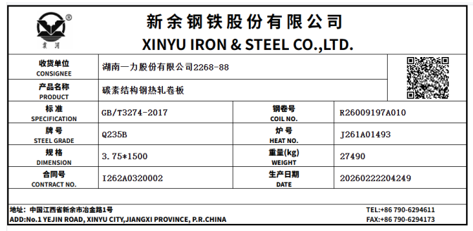 一、同意新余钢铁股份有限公司“袁河”牌热轧卷板产品在我所注册。